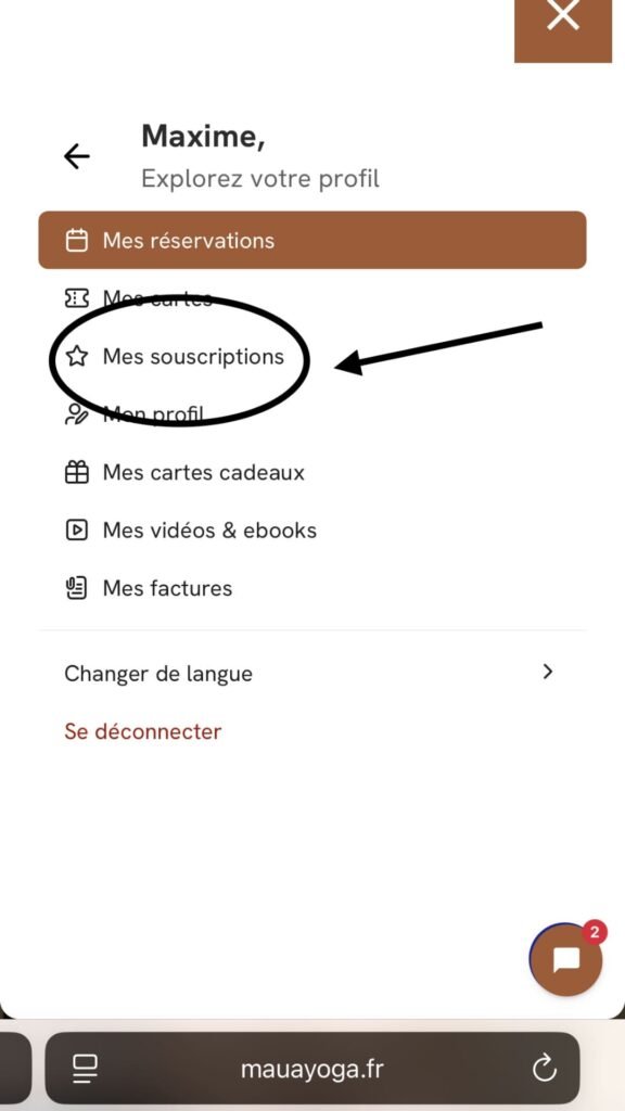 Aller sur le site Maua Yoga https://mauayoga.fr/ ou votre application.